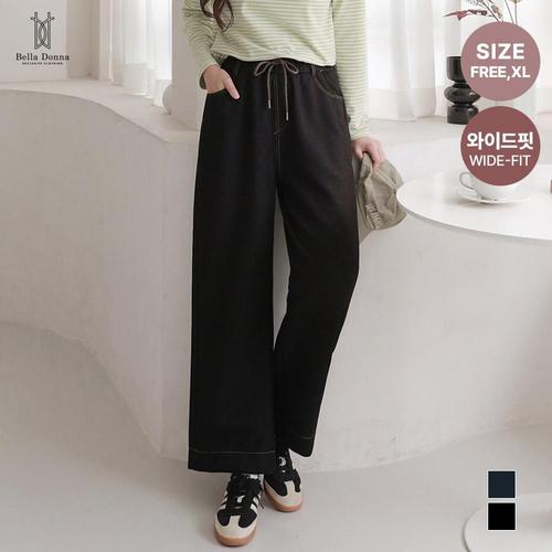벨라도나 여성 간절기 허리밴딩 소프트 데님 와이드팬츠 루즈핏 스판 청바지