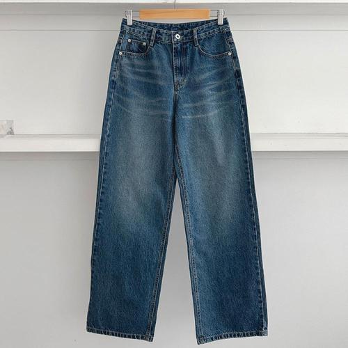 [옷자락] 여성 루즈핏 스트레이트 워싱 데님 팬츠