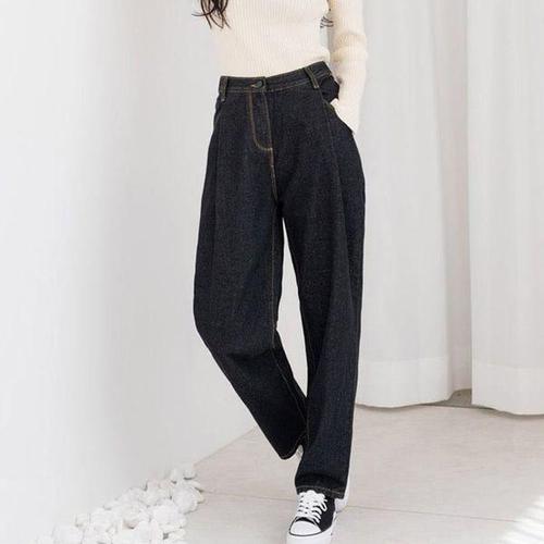 여성하의 여자하의 데님 청바지 여자핀턱오버핏배