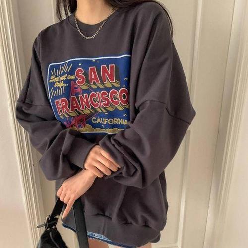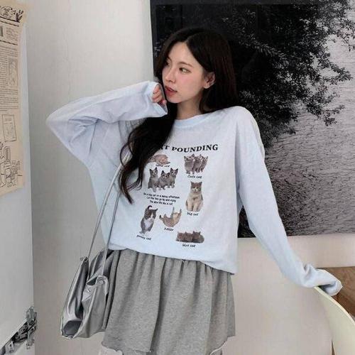 [에이치플러스몰]루즈핏 여성맨투맨 라운드넥 나시티 긴팔티 프린