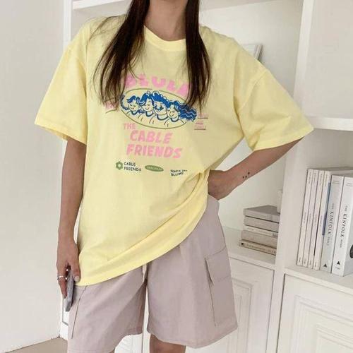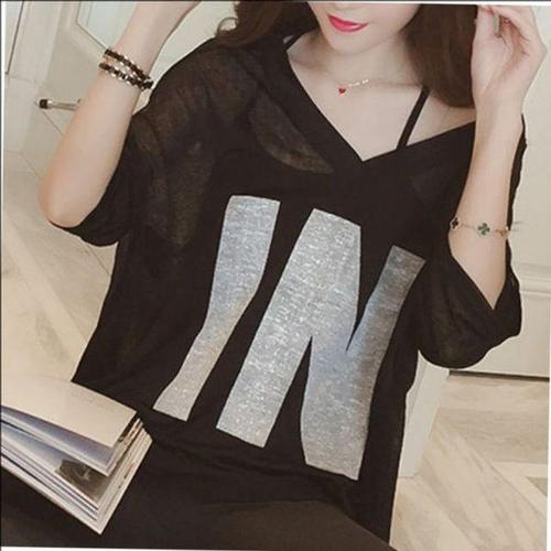 [에이치플러스몰]루즈핏 인기 여성 여름 나시 감성 반팔 시스루 티 셔
