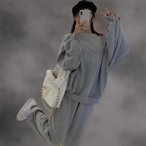 [신상오픈런]여성 캐주얼 루즈핏 트레이닝 맨투맨과 조거팬츠 세트 (41032417)