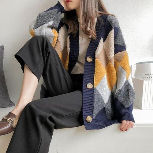 [ERA][ERA] 트리플컬러클래식 오버핏 아가일체크 디자인 카디건 버튼가디건 릴랙스핏 LK528 (41303108)