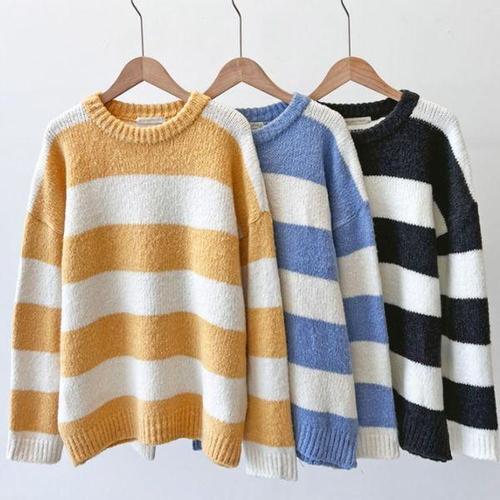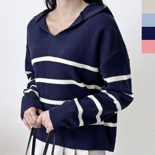 씨샵인더룸 / 더호 스트라이프 오버핏 카라넥 긴팔 니트 3color