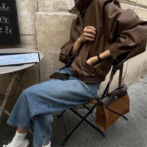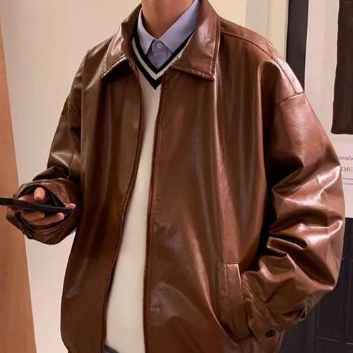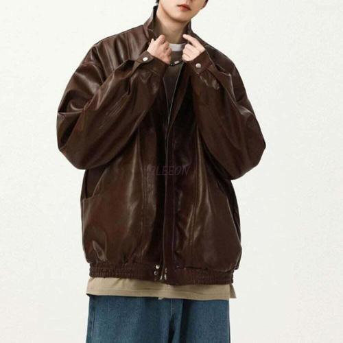[에이치플러스몰]오버핏 점퍼 봄 자켓 롱 가죽 프렌치 레더 가을 하프 남성 라이더자켓 가죽 남자 여자 ..