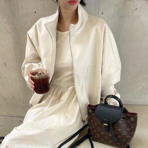 샵앤) 여성 카라넥 루즈핏 집업 가죽 자켓 점퍼 SIU-WJP-4278-아이보리