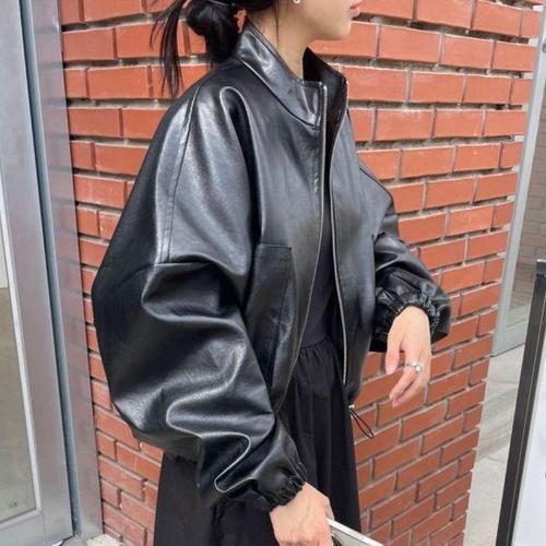 [셀러허브_여성트랜드패션]ONM 여성 재킷 오버핏 레더 라이더 벌룬 자켓