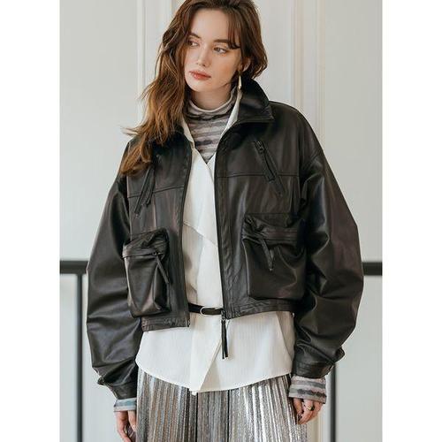 [막스까르띠지오]빅포켓 하이넥 루즈핏 레더 자켓