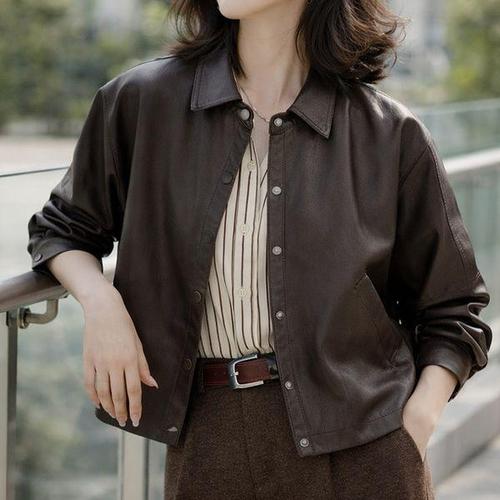 여성 빈티지 자켓 스타일 가죽 루즈핏 봄가을 미국 복고풍 외투 레트로 CH1
