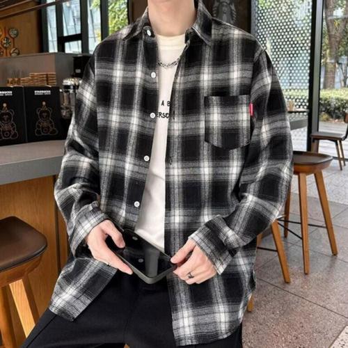 남여공용 캐주얼 빈티지 레이어드 루즈핏 체크 남방 셔츠 WFL6Y0R