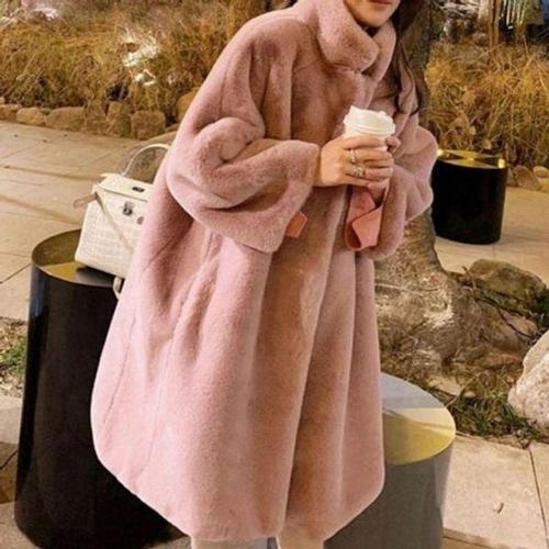 여성 루즈핏 인조퍼 롱코트 겨울 따뜻한 캐주얼 정장