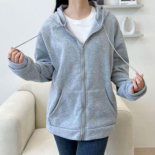 [에이치플러스몰]여성 무지 루즈핏 데일리 기본 기모 안감 후드 집업