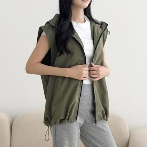 [셀러허브_여성트랜드패션]Rly 남녀공용 오버핏 스트링 바람막이 후드 조끼