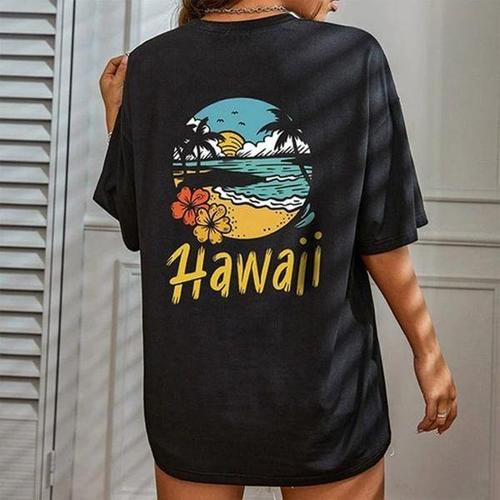 [셀러허브_여성트랜드패션]Rly 하와이 프린팅 반팔 오버핏 티셔츠 FD-0333