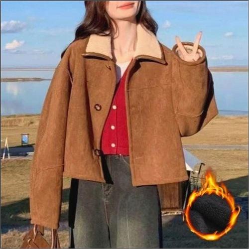 [오너클랜]인기상품 카라자켓 여자 코트 루즈핏 숏 아우터 스웨이드 세미크롭 [WFLAHYU_251215]