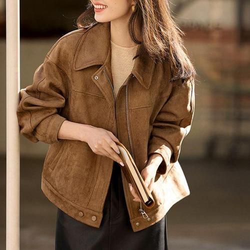 [신상오픈런]여성 스웨이드 더블포켓 루즈핏 카라 크롭 재킷 (41928575)