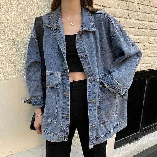가을 겨울 오버핏 캐주얼 따뜻한 아우터 여성용 빅사이즈 청자켓 기모 데님 자켓