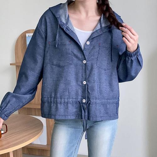 [신상오픈런]여성 오버사이즈 후드 스트링 셔츠 투포켓 긴팔 블라우스 (38541783)