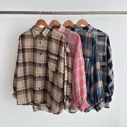 [신상오픈런]여성용 체크 패턴 언발란스 오버사이즈 긴팔 시스루 가을 커버 셔츠 (40818327)