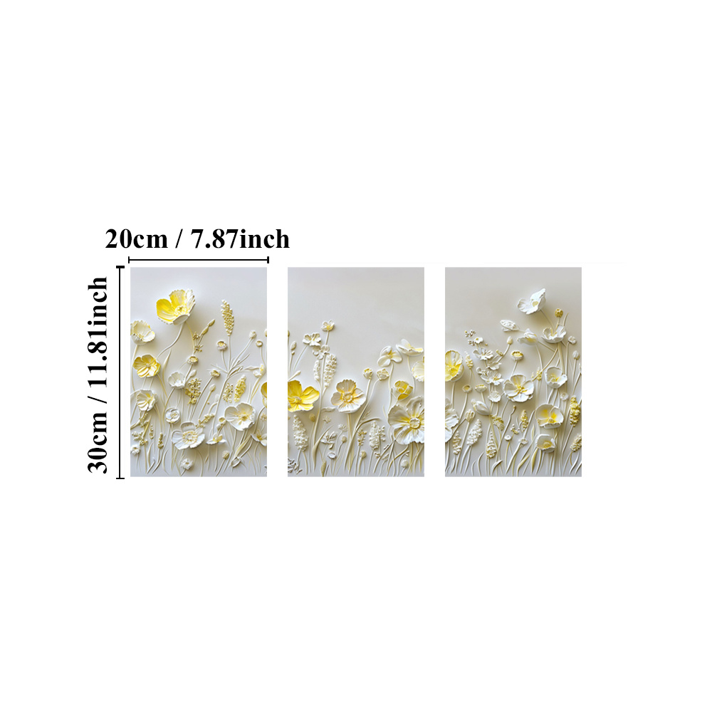 TEMU 2D 플랫, 2D 플랫, 흰색과 노란색 꽃이 있는 액자 캔버스 아트 3점 세트, 벽 장식용 추상 풍경 그림, 홈 데코용 작은 신선한 꽃 프린트, 감성적인 방 꾸미기, 완벽한 휴일 선물