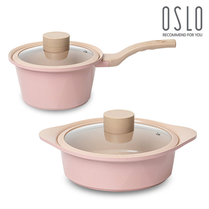 오슬로 인덕션겸용 냄비 2종세트 (18편수+20양수) 세라믹 코팅 주방냄비