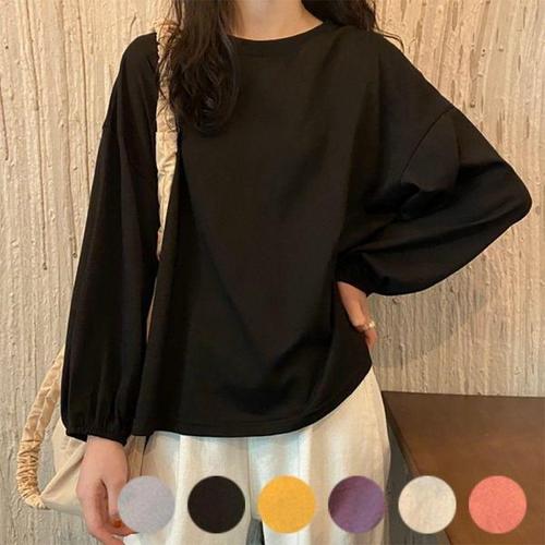 [다잇템]여자 손목 고무줄 포인트 무지 긴팔 티셔츠