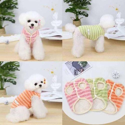 [에이치플러스몰]스트라이프 뽀글이 후리스 극세사 고양이옷 강아지옷 단추 수면 조끼 애견 옷 강아지 애..