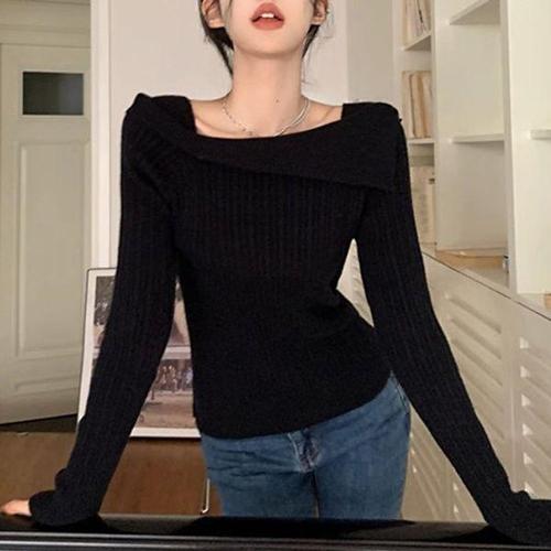 [옷자락] 여성 무지 컬러 레이어드 스퀘어넥 오프숄더 니트