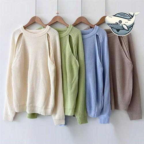 [옷자락] 여성 러블리 골지 오프숄더 긴팔 니트 초커