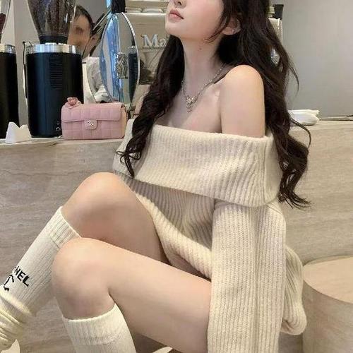 [옷자락]여성 러블리 골지 오프숄더 긴팔 니트 초커