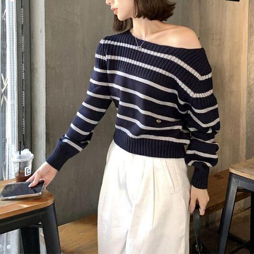 [랄라모션]스트라이프 오픈숄더 니트 연말룩(llm0430)