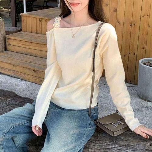 [셀러허브_여성트랜드패션]ONM 원 오프숄더 니트 플라워 부드럽고 신축성 좋은