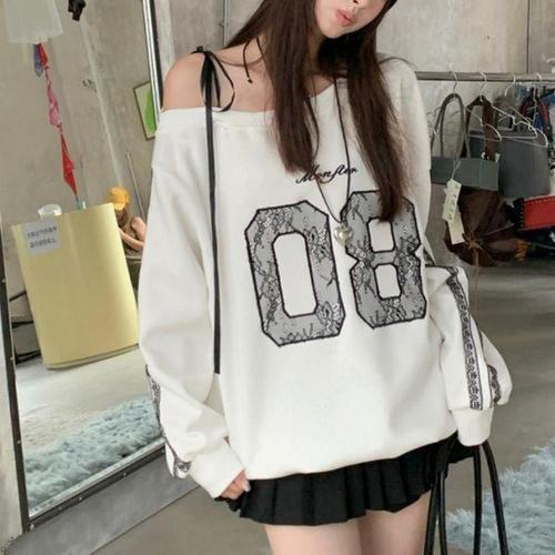 [옷자락]여자 오버핏긴팔 가을 오프숄더 프린팅 루즈 맨투맨