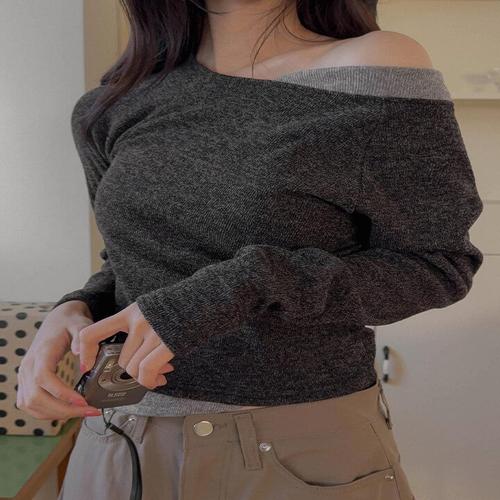 [엘루이즈][엘루이즈] [쫀쫀스판] 러비아 오프숄더 골지 니트 티셔츠(3color)