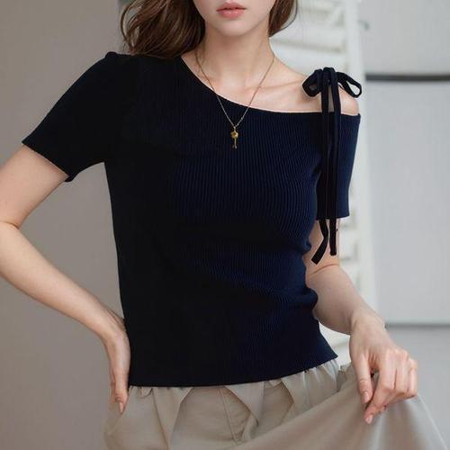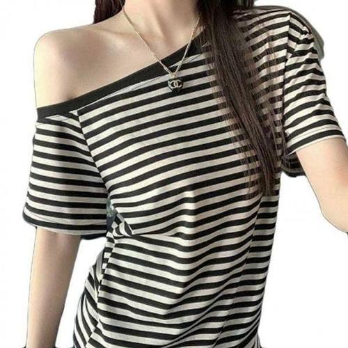 [에이치플러스몰]여성 여름 캐주얼 원숄더 오프숄더 슬림핏 반팔 티셔츠