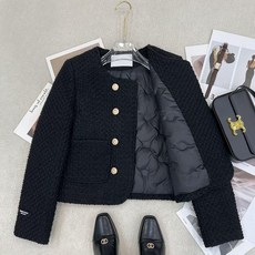 UPPERCUT 패딩 트위드자켓 겨울용 정장자켓 하객룩 오피스룩 금장버튼 디테일 크롭자켓 빅사이즈 겨울자켓