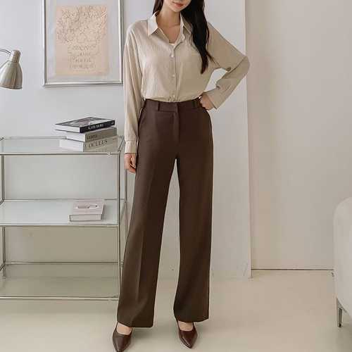[신상오픈런]여자 가을 오피스룩 레직기 일자 와이드 뒷밴딩 슬랙스 (40724485)