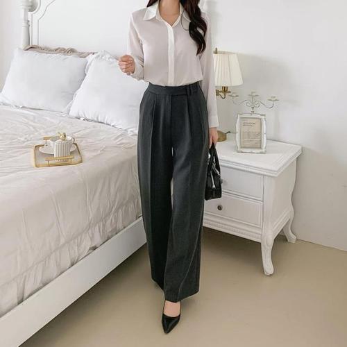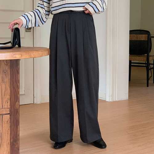 [신상오픈런]여자 핀턱 일자핏 가을 오피스룩 와이드 스판 슬랙스 (42358007)
