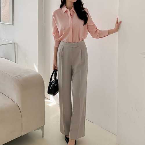 여자 오피스룩 핑크 SS 편한 레직기 슬랙스