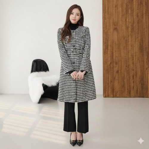 스타일라떼 / 벨티드 하운드 체크 울 자켓 원피스 투웨이 스타일 세련된 오피스룩 하객룩