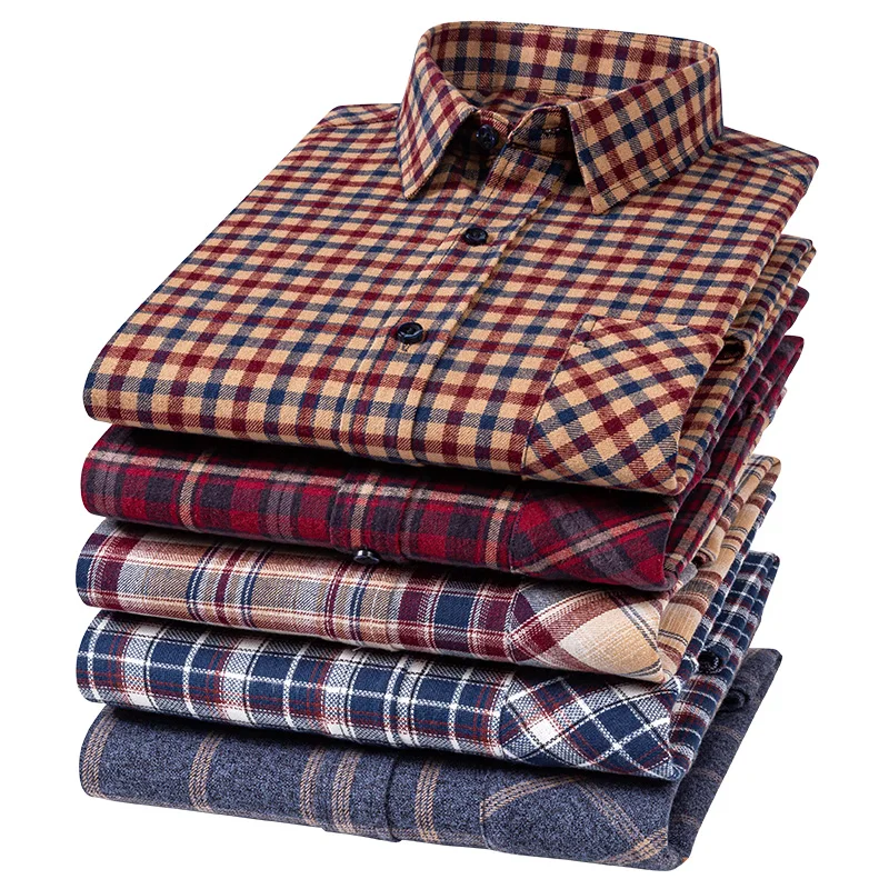 가을 겨울 두꺼운 플리스 셔츠 남성용 비즈니스 체크 셔츠 긴팔 따뜻한 옷 남성용 싱글 포켓 클래식 체크 셔츠
