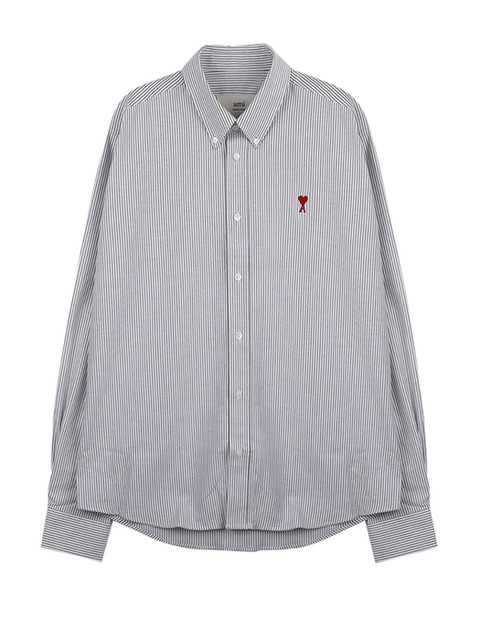 (AMI)아미 스몰 하트 로고 버튼 다운 스트라이프 코튼 옥스포드 셔츠 블랙 내추럴 화이트 BFUSH063-CO0087-039