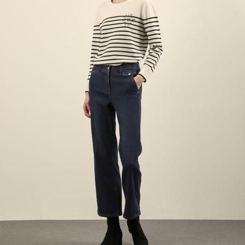 올리비아로렌 여성용 자수 디테일 부츠컷 데님 팬츠 VOCMP4W9141