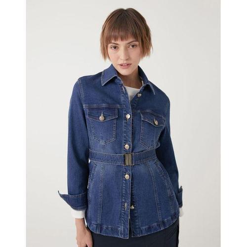 [올리비아로렌]벨티드 슬림 데님 자켓_VVBMJ3F7481