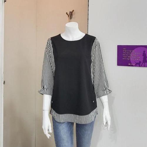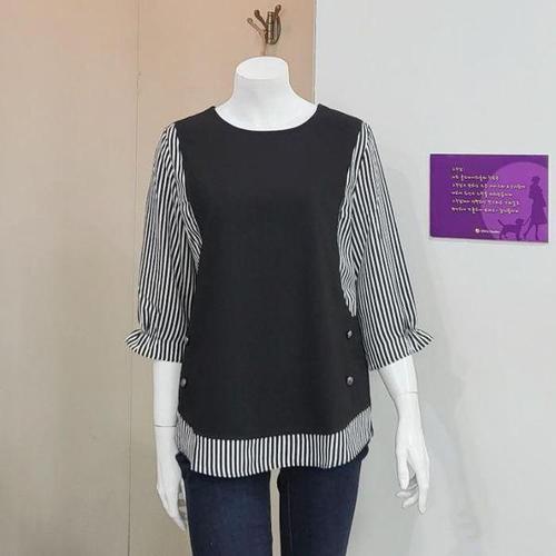 올리비아하슬러 스트라이프 버튼 티_OHEWTS110