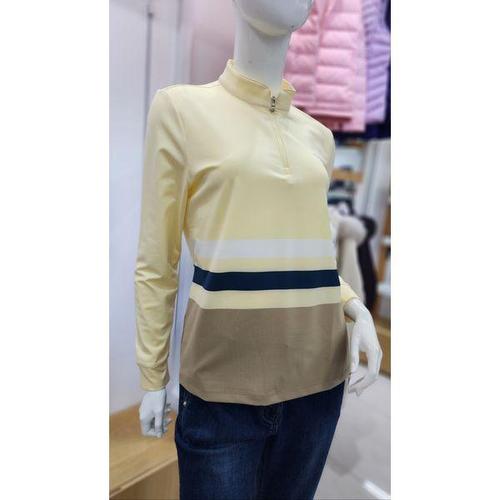 [올포유]25SS여성 몸판 스트라이프 반집업 티셔츠,톡톡하고 부드러우며 신축성 좋은 티셔츠_AWTHO1381