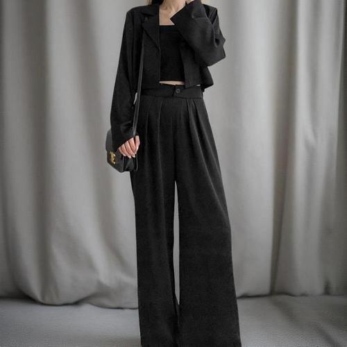 [신상오픈런]여성 핀턱 맥시 와이드핏 블랙 크롭 자켓 투피스 세트 (41266687)