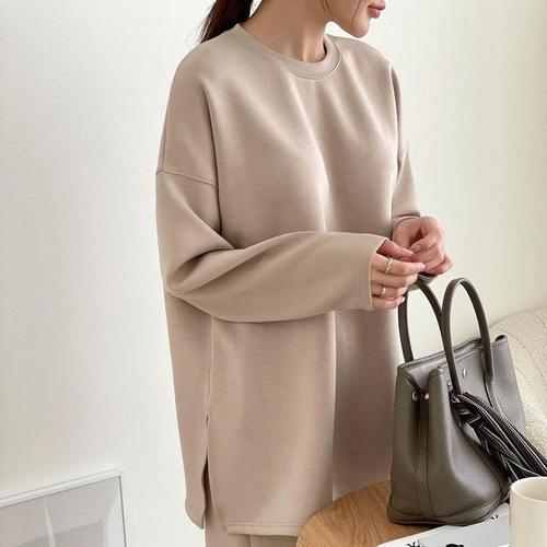 [신상오픈런]오버핏 라운드넥 옆트임 긴팔롱티 와이드팬츠 투피스 (29193224)