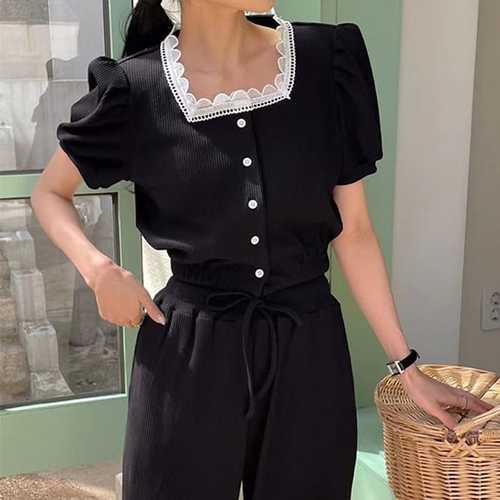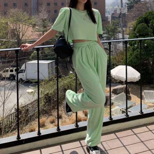 슈팅스타 / 반팔셔츠 + 캐주얼 와이드 팬츠 투피스 세트 804569