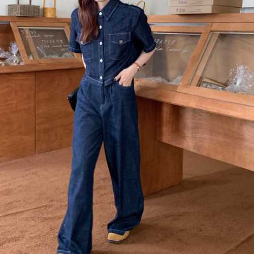 슈팅스타 / 자켓 + 데님 와이드 팬츠 투피스 세트 VV38423290gz